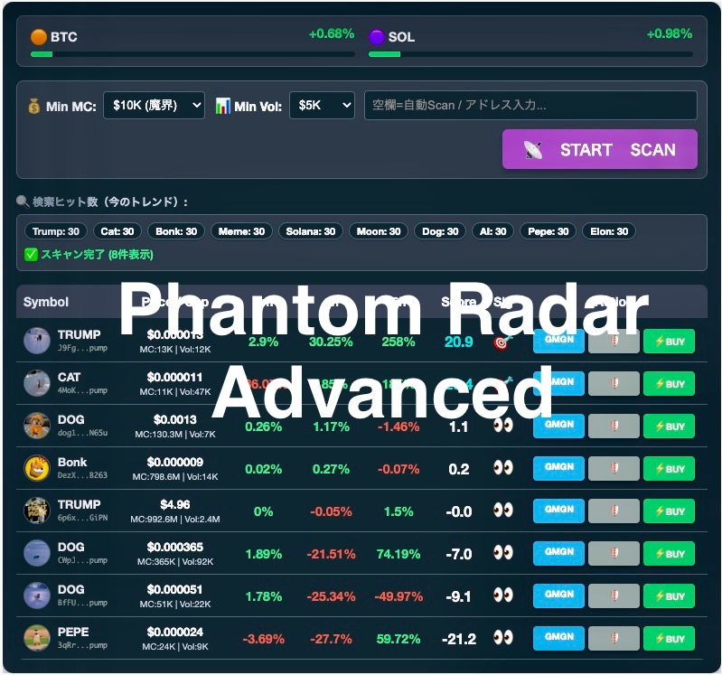 Phantom Radar Advanced (Ver 3.3) 活用マニュアル:データに基づいたSolana銘柄分析