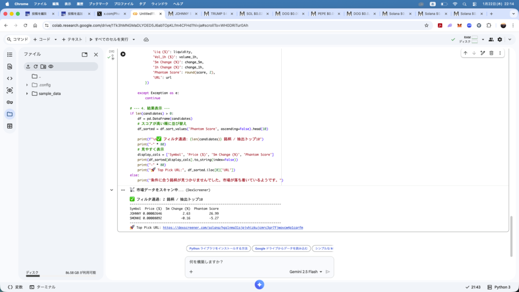 これらを自動で行い、有望な銘柄だけをリストアップしてくれました。 この間、わずか数秒。